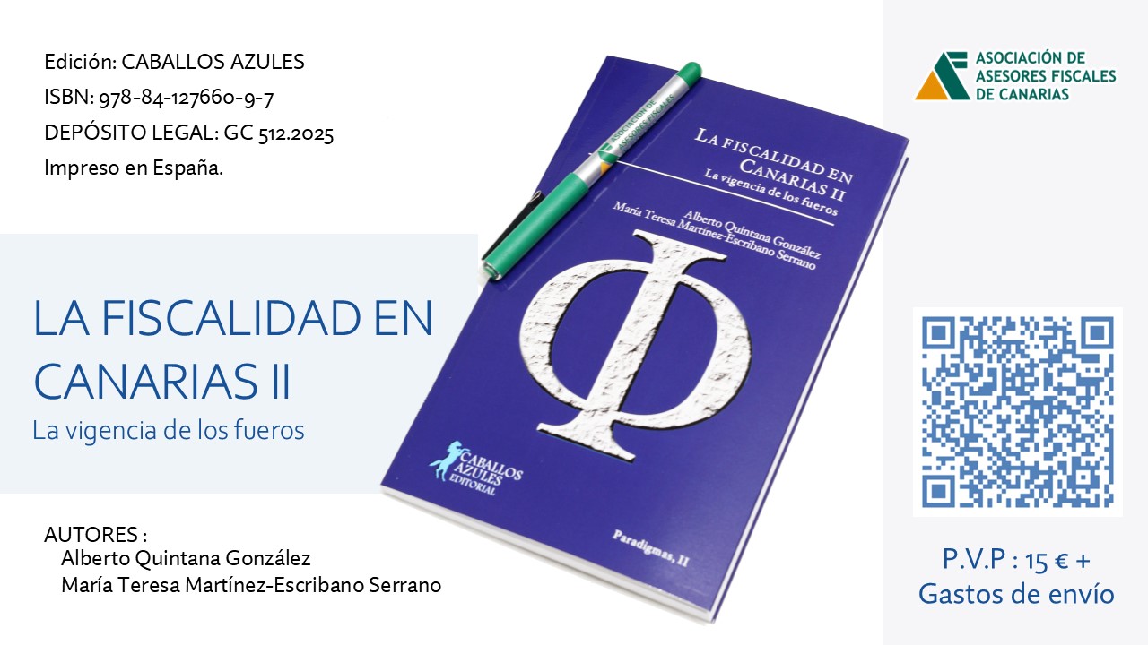 Nos complace informarte que la Asociación de Asesores Fiscales de Canarias (AFC) pone a la venta el libro: “La Fiscalidad en Canarias II – La vigencia de los fueros”.