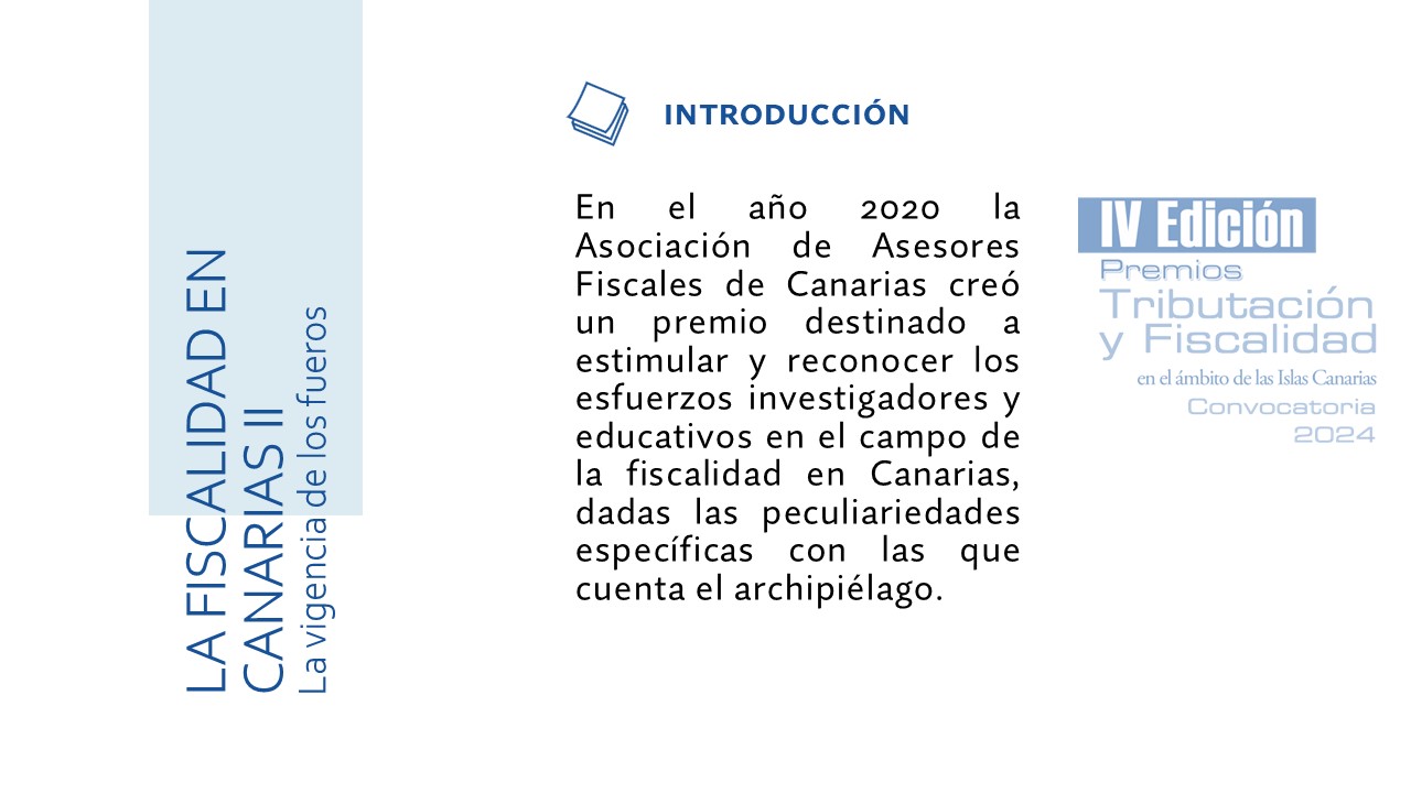 «Esta obra recoge los trabajos premiados de la IV Edición de los Premios AFC de Trabajos en Tributación y Fiscalidad en el Ámbito de las Islas Canarias. «