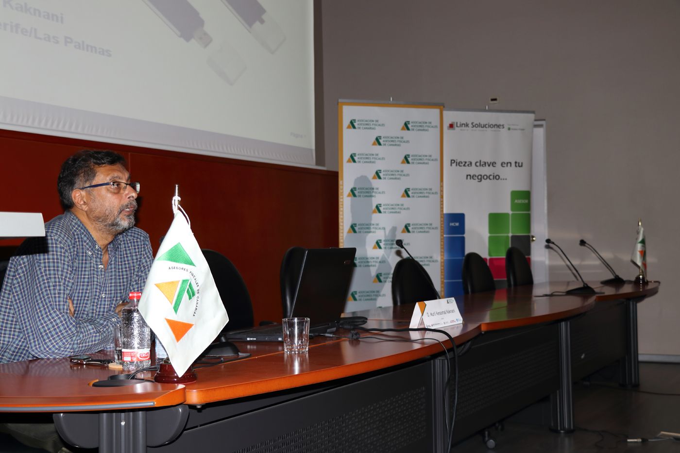 Murli Kessomal Kaknani, Licenciado en Ciencias Económicas y Empresariales, Auditor Censor Jurado de Cuentas, Profesor Titular de la ULPGC y Asesor Fiscal hizo un amplio repaso de las novedades más importantes sobre «Renta, Sociedades, Cuentas Anuales, Cierre Fiscal y Contable» entre otras: rentas exentas, rendimientos del trabajo y capital, actividades económicas, modificaciones en el régimen de estimación objetiva, reducciones por aportaciones y contribuciones a sistemas de previsión social, tributación en el Impuesto sobre sociedades de las sociedades Civiles, operaciones vinculadas, Reserva de capitalización, etc…